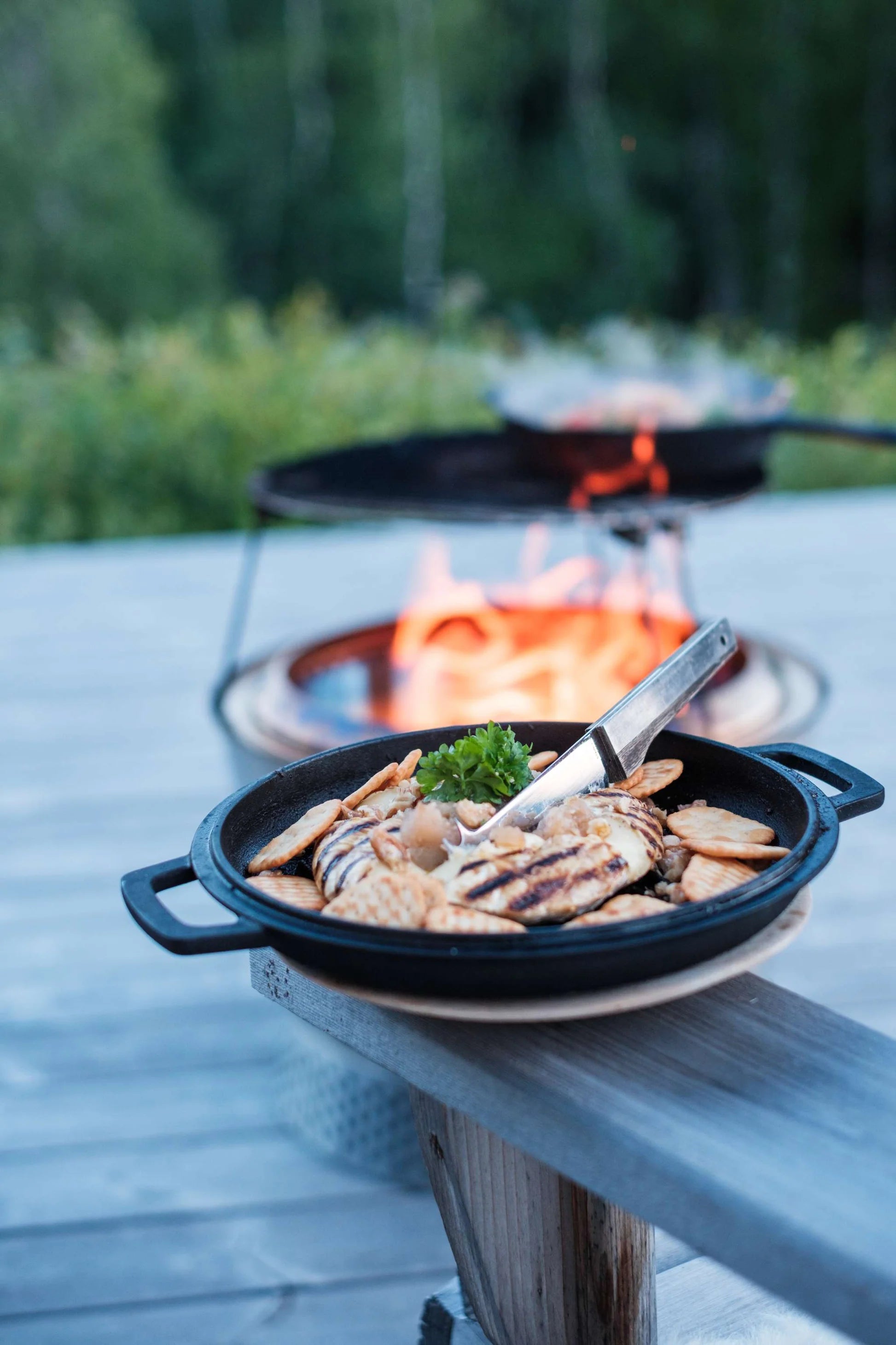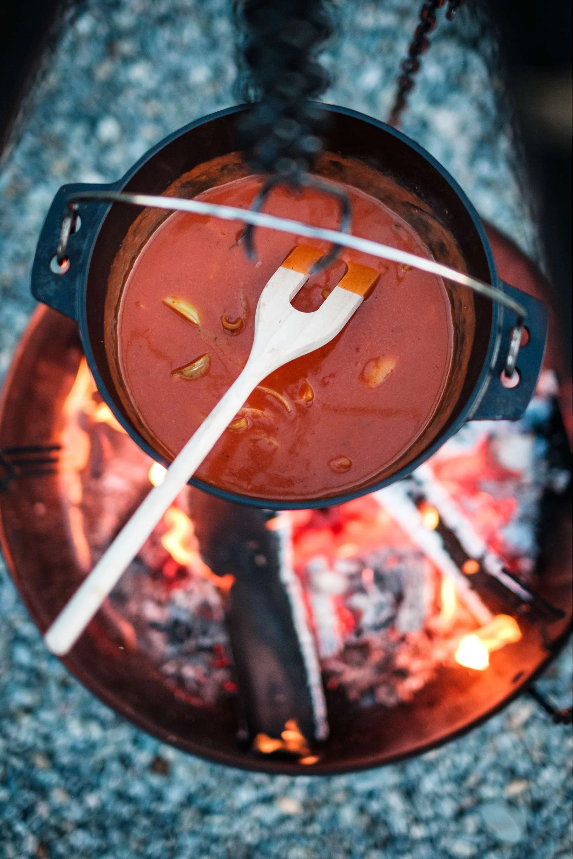 Gietijzer is waarschijnlijk het meest geschikte materiaal voor koken boven open vuur. Het is extra robuust, stabiel en verdeelt de warmte gelijkmatig door de pan of pot. Bovendien houdt gietijzer de warmte veel langer vast dan andere metalen.