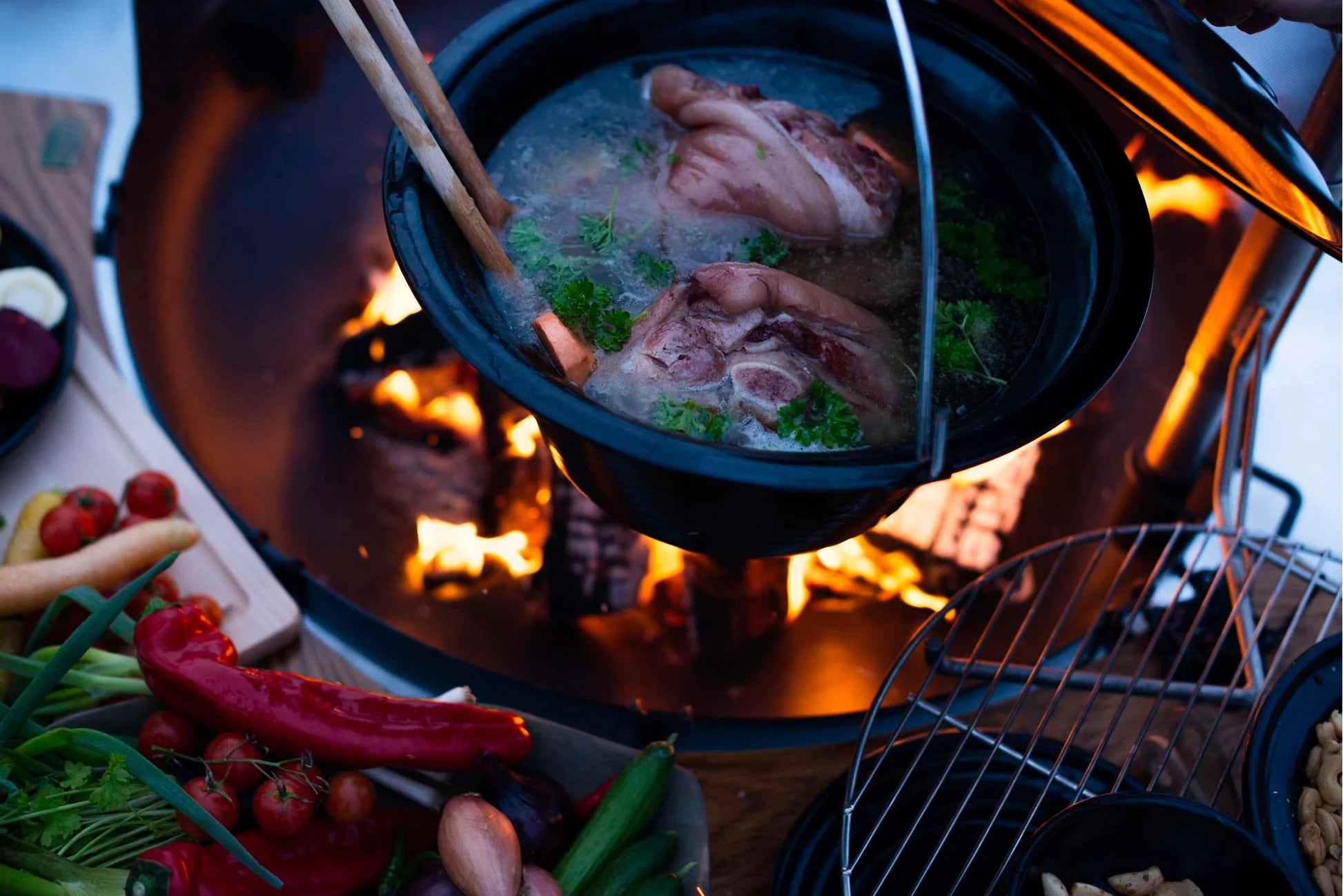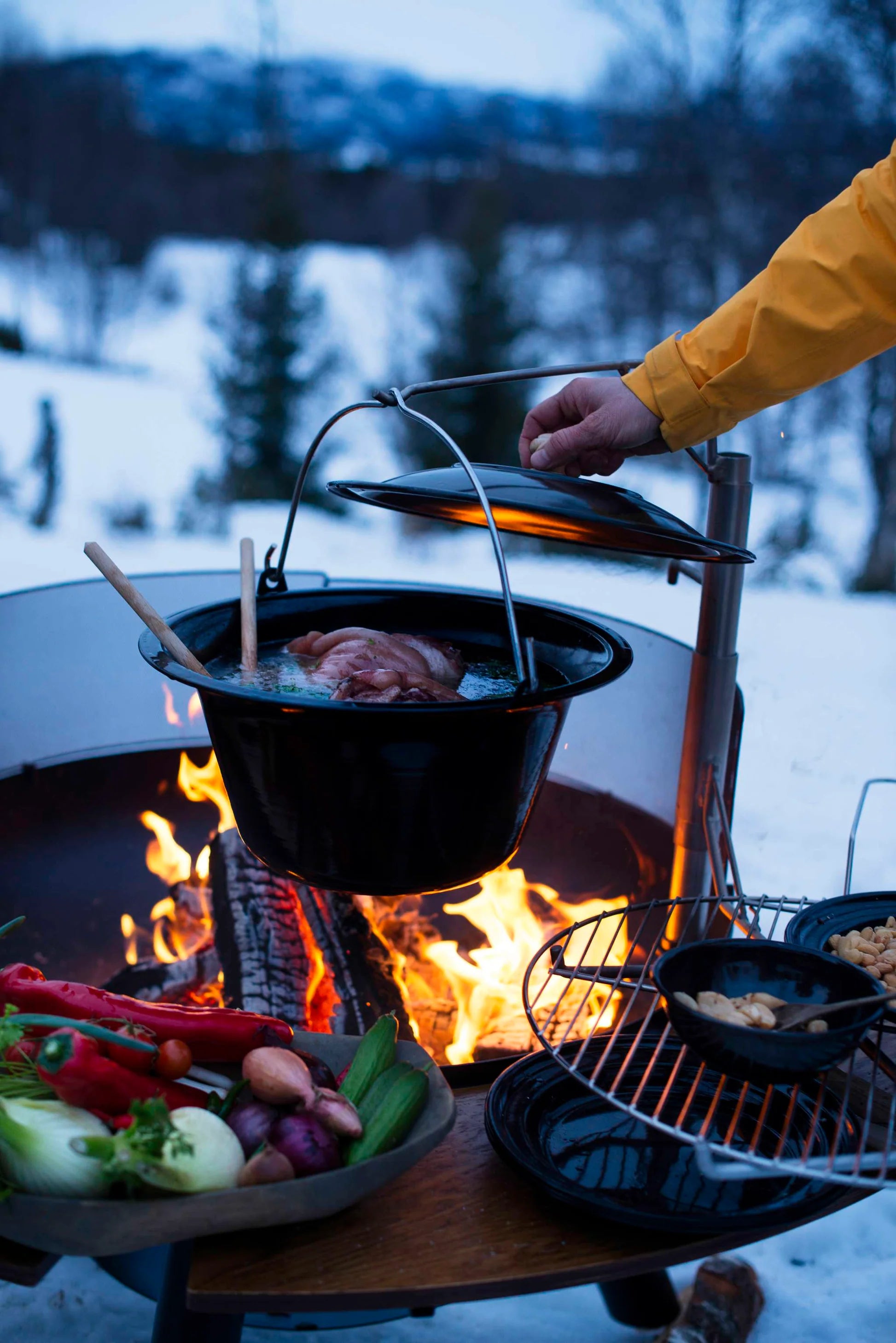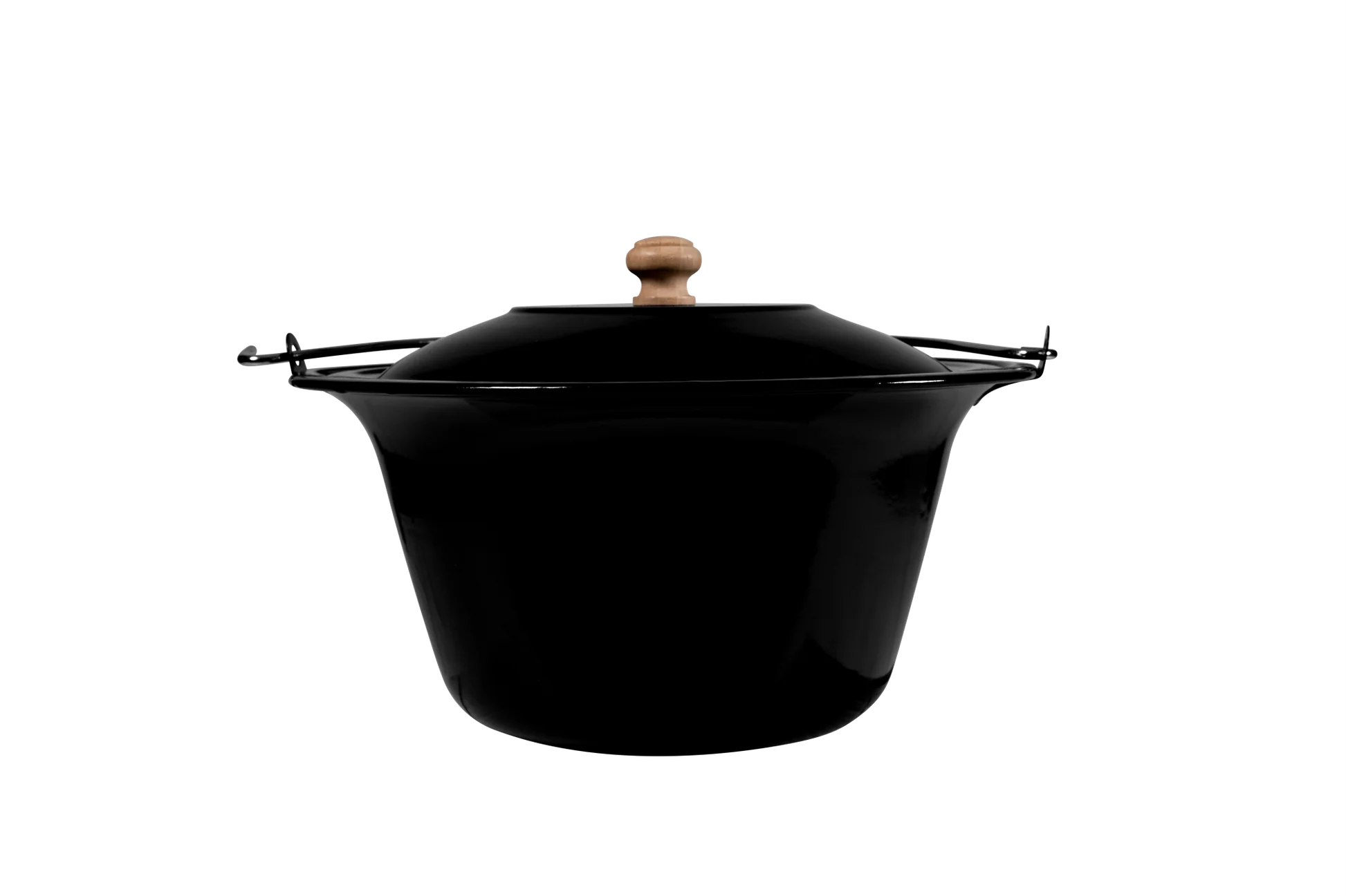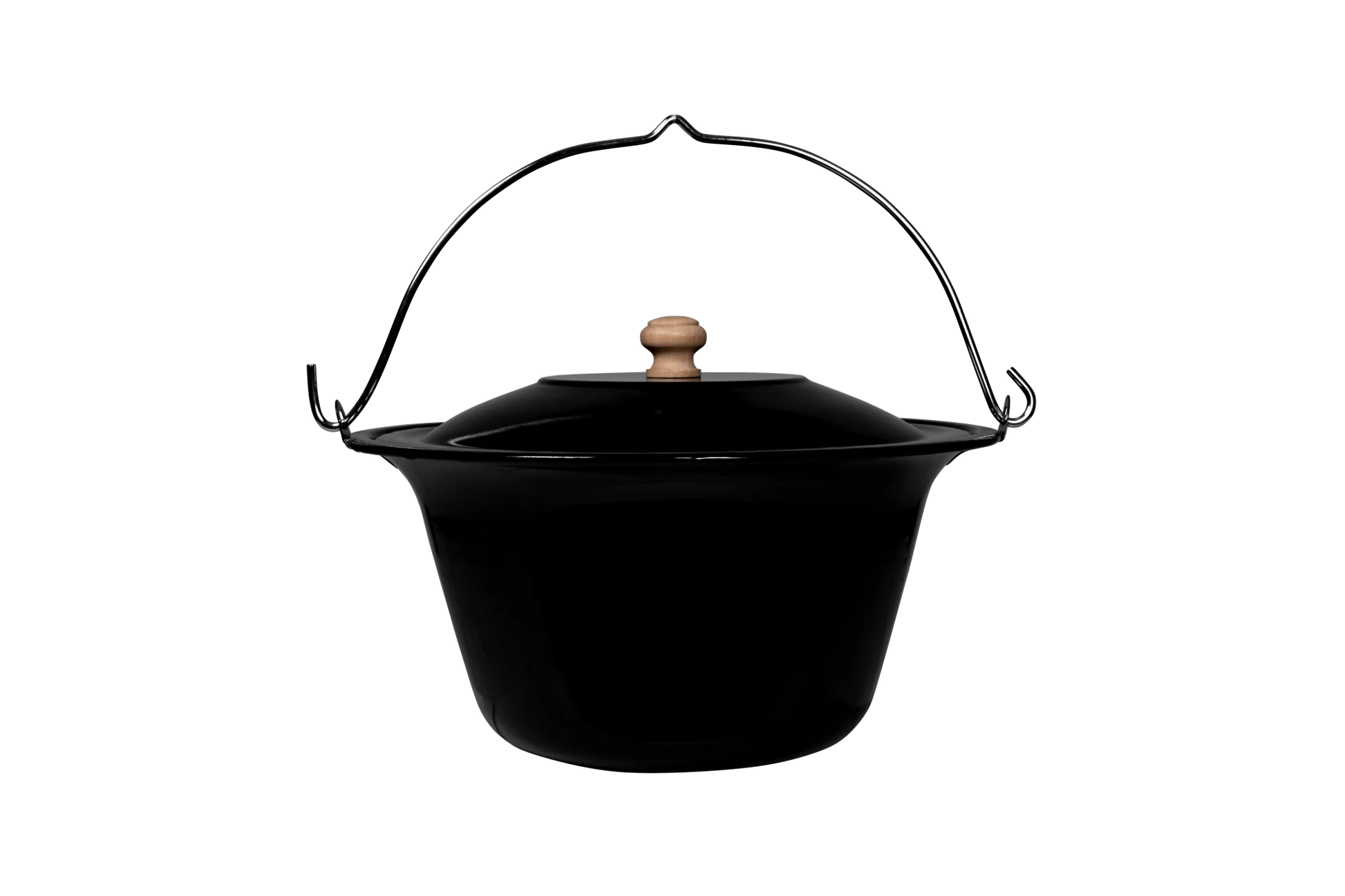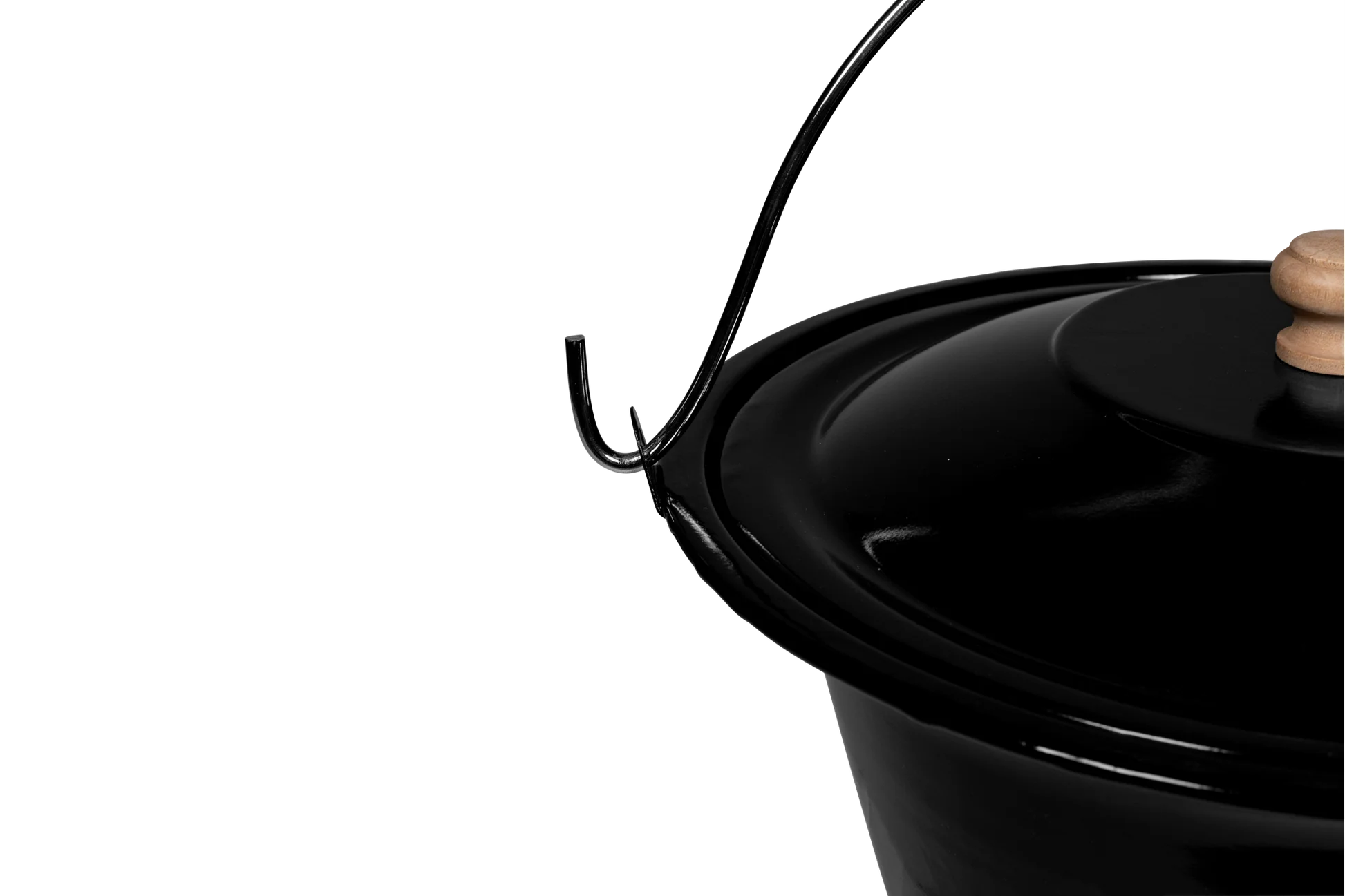 De Espegard Soeppan is een praktische pan van zwart geëmailleerd staal, speciaal ontworpen voor koken boven open vuur. Ideaal voor het bereiden van warme, zelfgemaakte soep, stoofpot of hachee in de buitenlucht. De soeppan kan goed tegen hoge temperaturen en is eenvoudig schoon te maken. Voorzien van een ophanghandvat van roestvrij staal en een deksel met houten knop.