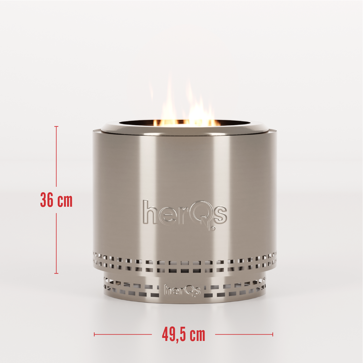 De stevige behuizing van roestvrij staal is onderhoudsvriendelijk en bestand tegen weer en wind. Dankzij de stabiele ringstandaard staat de Blaze vuurkorf veilig en stevig, waar je hem ook neerzet. De herQs Blaze wordt geleverd met een beschermhoes en een levenslange garantie die laat zien hoe zeker herQs is van de kwaliteit.