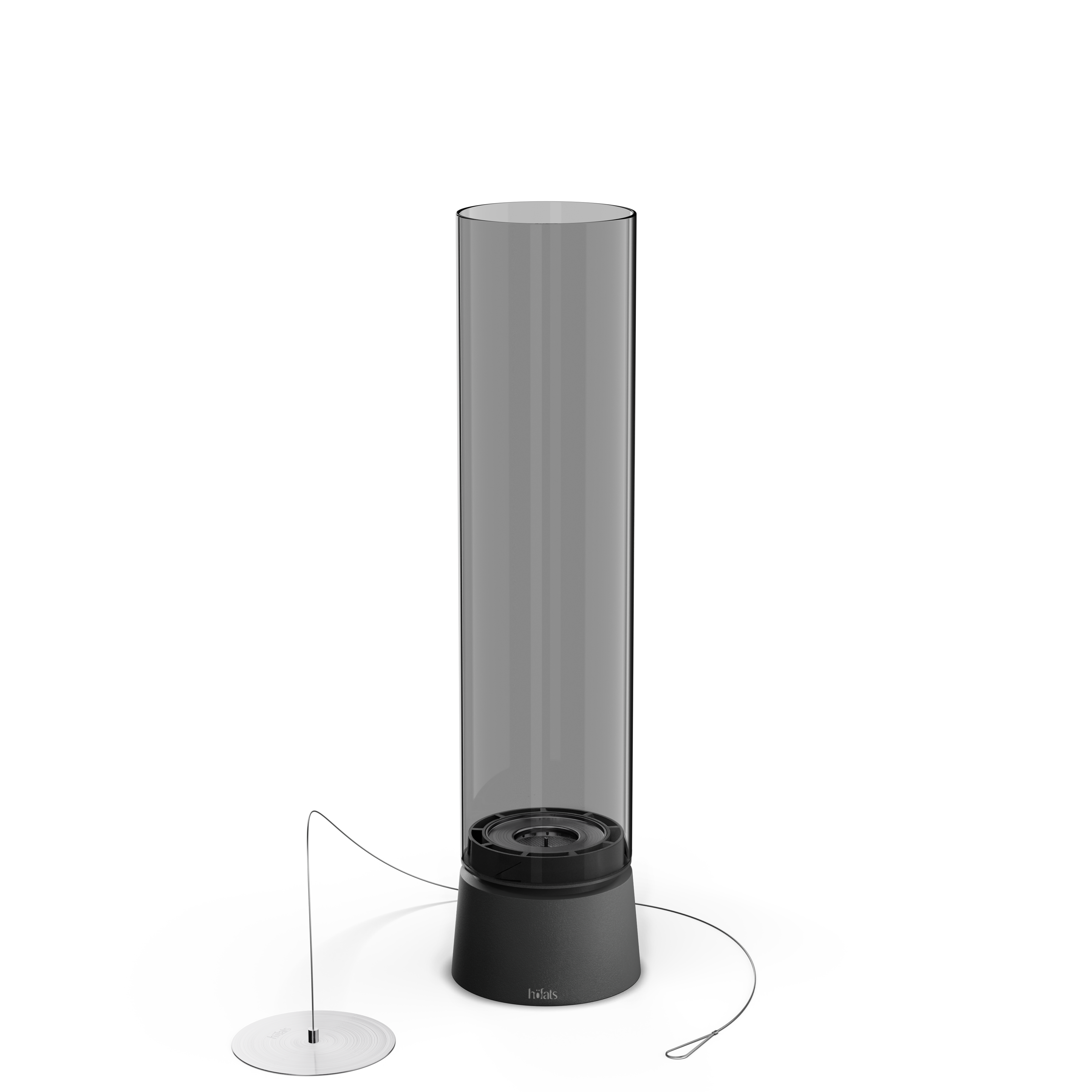 Matzwarte basis, vleugelbehuizing met veiligheidscontainer, Bio-Burner met afneembare Eco-Ring, blusdeksel, cilinder van rookglas
