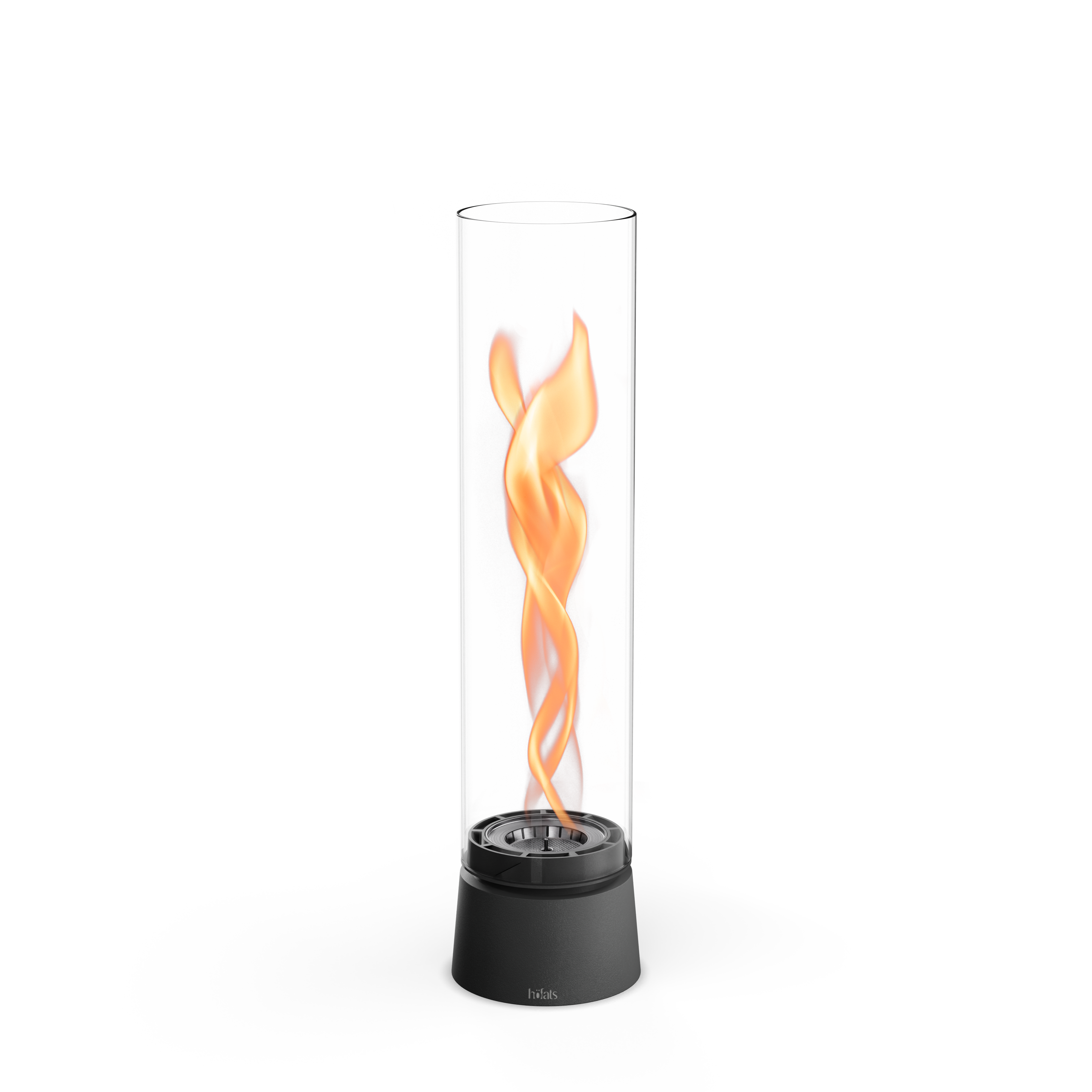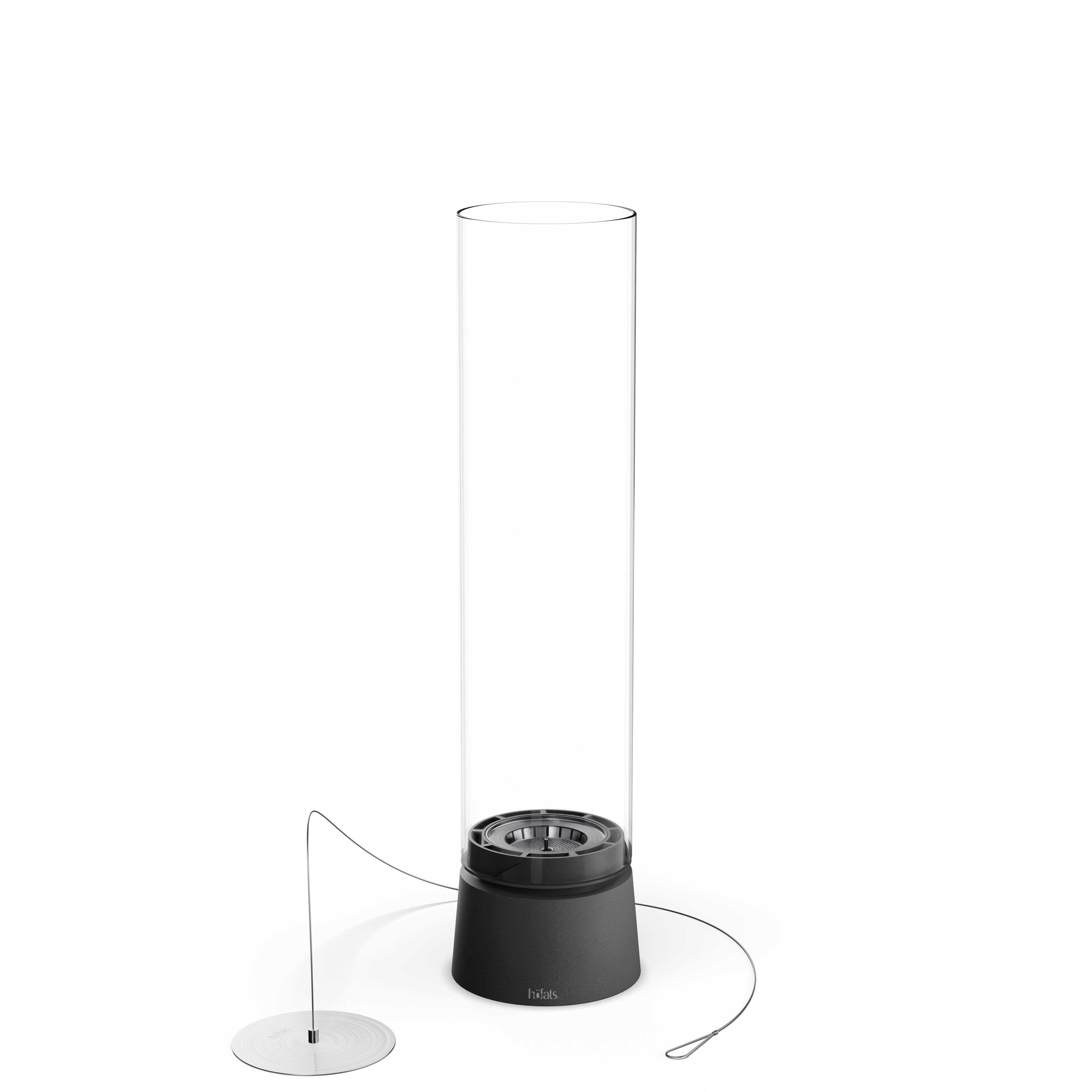 Basis met matzwarte afwerking, vleugelbehuizing met veiligheidscontainer, Bio-Burner met afneembare Eco-Ring, blusdeksel, glazen cilinder