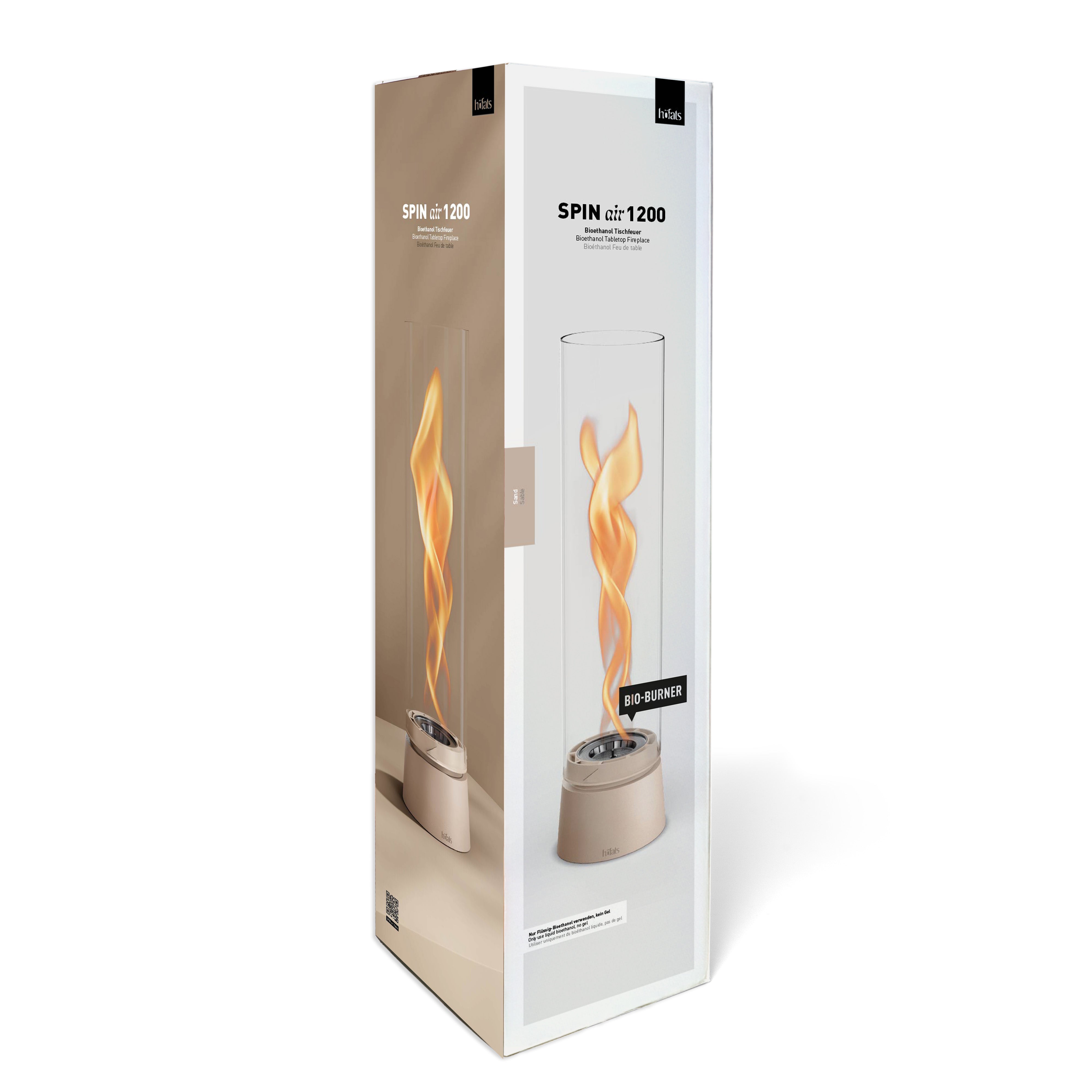 De Höfats SPIN Air 1200 Tafelvuur Zand is een stijlvolle bio-ethanol tafelhaard met een tijdloos design en een ronddraaiende vlam die direct in het oog springt. Deze haard verspreidt een krachtige warmte tot wel 2000 watt; vergelijkbaar met een elektrische verwarming. Perfect dus tijdens koelere avonden in een serre of op het dakterras. De slanke vorm en de zandkleurige afwerking geven een sfeervolle touch aan elk interieur of buitenruimte.