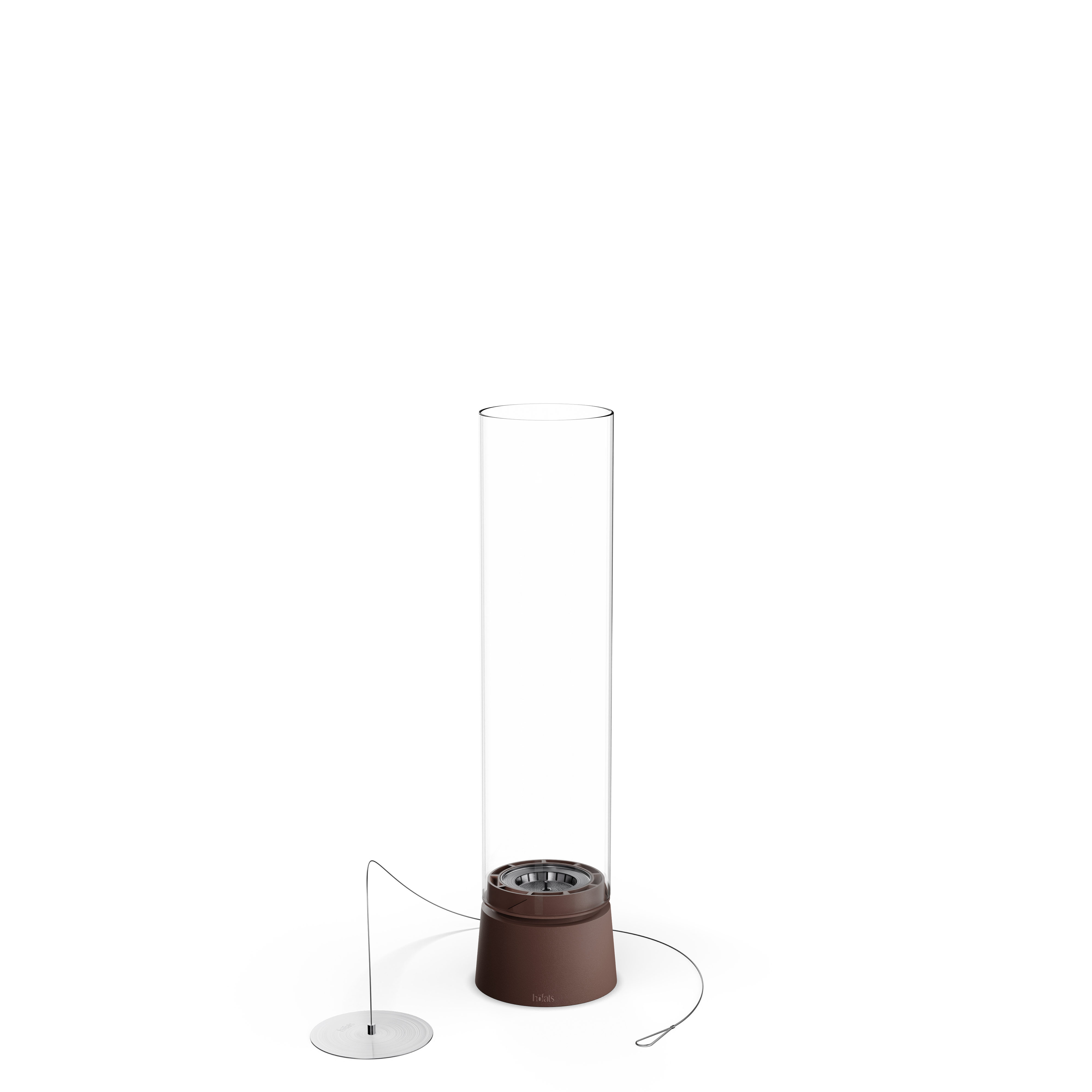 Basis met bruine afwerking, vleugelbehuizing met veiligheidscontainer, Bio-Burner met afneembare Eco-Ring, blusdeksel, glazen cilinder